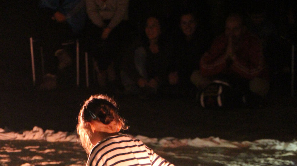 among the interpreters. In Manipulo, the public triggers the music through the sound and vibration created by the stones hitting the tables; and the sound is amplified by contact microphones controlled by live musicians.